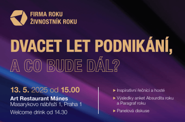 Akce se bude konat odpoledne 13. května 2025 v pražské restauraci Art Restaurant Mánes. Místo si prosím rezervujte do 6. května 2025, nebo nás kontaktujte na info@firmaroku.cz.